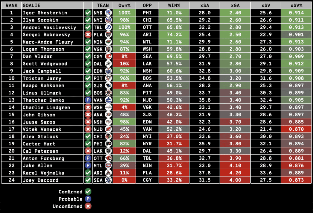 The Notebook includes everything you need to know to set your Season-Long and Daily Fantasy Lineups: including Injuries, Projected Lines and Pairings, Starting Goalie Rankings, and Value Picks (DFS).