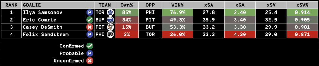The Notebook includes everything you need to know to set your Season-Long and Daily Fantasy Lineups: including Injuries, Projected Lines and Pairings, Starting Goalie Rankings, and Value Picks (DFS).