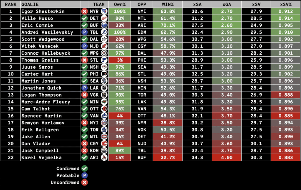 The Notebook includes everything you need to know to set your Season-Long and Daily Fantasy Lineups: including Injuries, Projected Lines and Pairings, Starting Goalie Rankings, and Value Picks (DFS).
