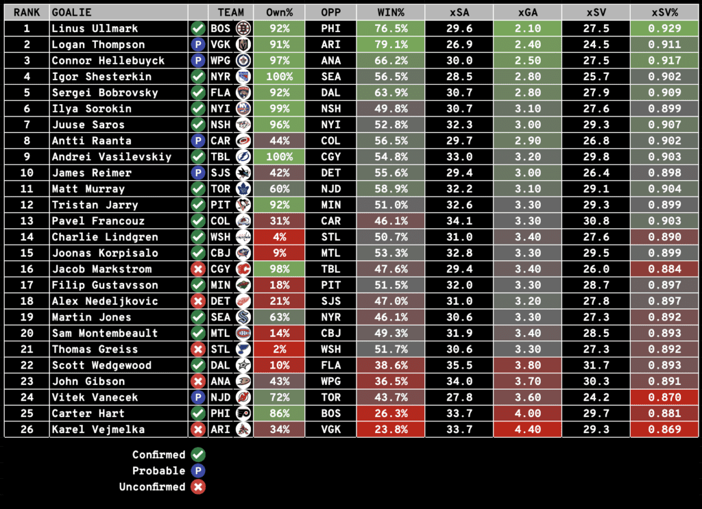 The Notebook includes everything you need to know to set your Season-Long and Daily Fantasy Lineups: including Injuries, Projected Lines and Pairings, Starting Goalie Rankings, and Value Picks (DFS).
