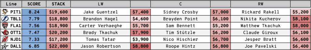 | Guentzel – Crosby ⚠️ – Rakell Zucker – Malkin ⚠️ – Rust McGinn – Carter – Kapenen Heinen – Blueger – Archibald Pettersson – Petry Dumoulin – Rutta Joseph – Ruhwedel | Gaudreau – Jenner – Laine Johnson – Roslovic – Nyquist Chinakhov – Sillinger – Marchenko Robinson – Kuraly – Olivier Gavrikov – Bjork Gudbranson – Berni Bayreuther – Peeke |