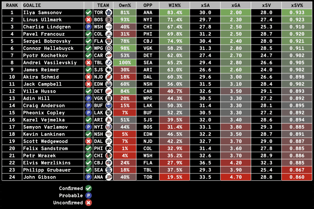 The Notebook includes everything you need to know to set your Season-Long and Daily Fantasy Lineups: including Injuries, Projected Lines and Pairings, Starting Goalie Rankings, and Value Picks (DFS).