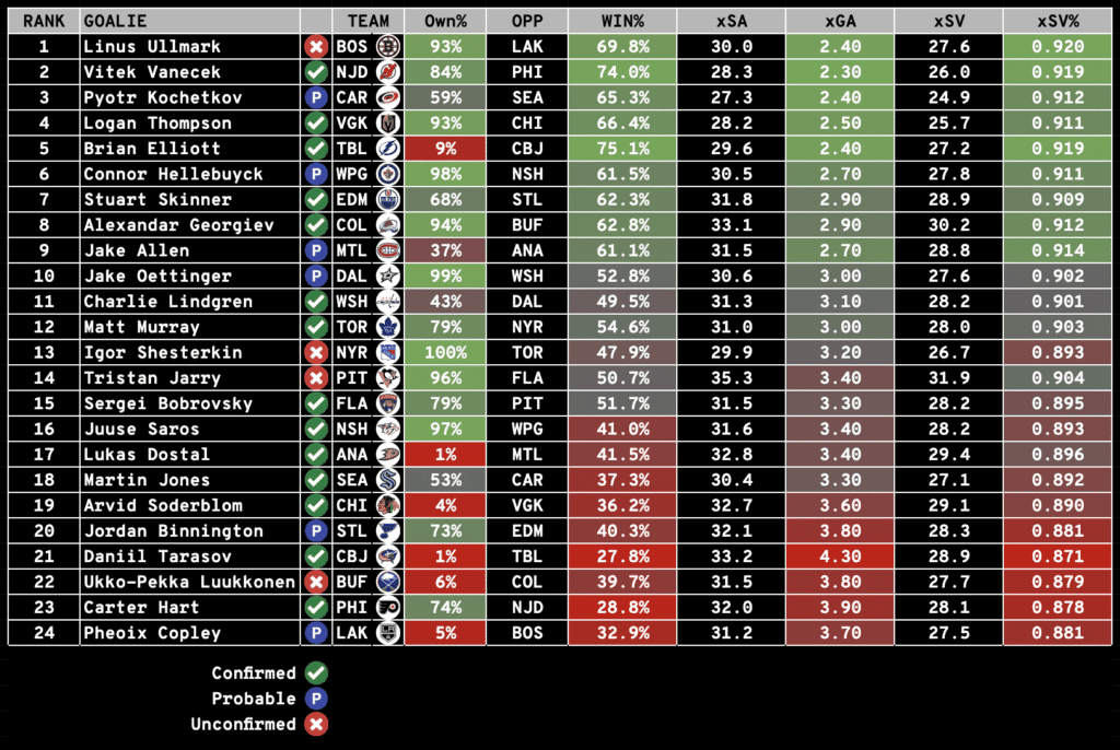 The Notebook includes everything you need to know to set your Season-Long and Daily Fantasy Lineups: including Injuries, Projected Lines and Pairings, Starting Goalie Rankings, and Value Picks (DFS).