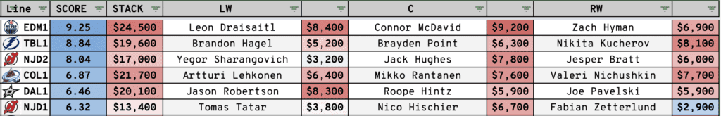 | Draisaitl – McDavid – Hyman Janmark – RNH – Yamamoto Holloway – Hamblin – Puljujarvi Kostin – Shore – Ryan Nurse – Ceci Kulak – Barrie Broberg – Bouchard | Saad – O’Reilly – Leivo Buchnevich – Schenn – Tarasenko Barbashev – Thomas – Kyrou Toropchenko – Acciari – Pitlick Leddy – Parayko Krug – Faulk Mikkola – Bortuzzo |