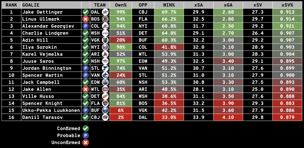 The Notebook includes everything you need to know to set your Season-Long and Daily Fantasy Lineups: including Injuries, Projected Lines and Pairings, Starting Goalie Rankings, and Value Picks (DFS).