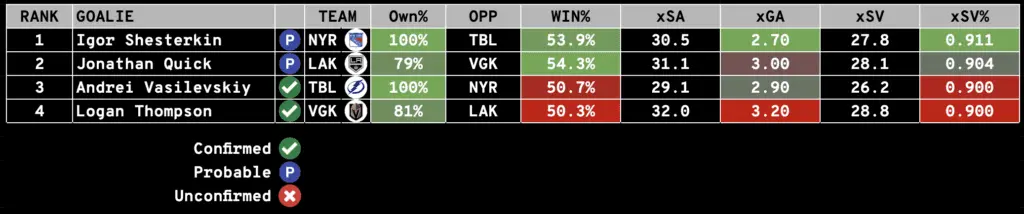 Daily Goalie Rankings are brought to you by OwnersBox, use promo code DFO for a discount when you sign up for daily fantasy games at OwnersBox. Submit your lineup today.
