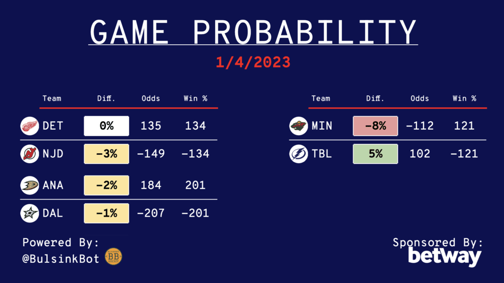 Daily NHL Betting Guide – 01/04/23
