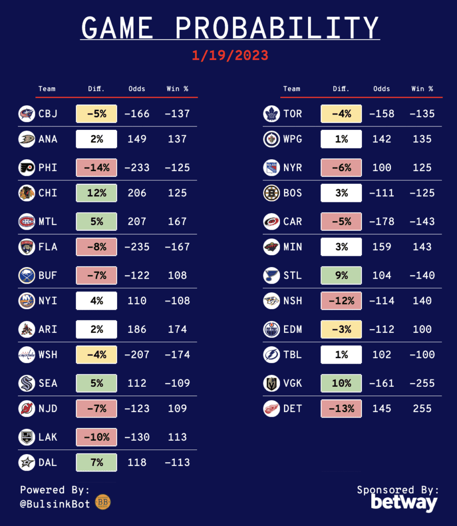 Daily NHL Betting Guide – 01/19/23