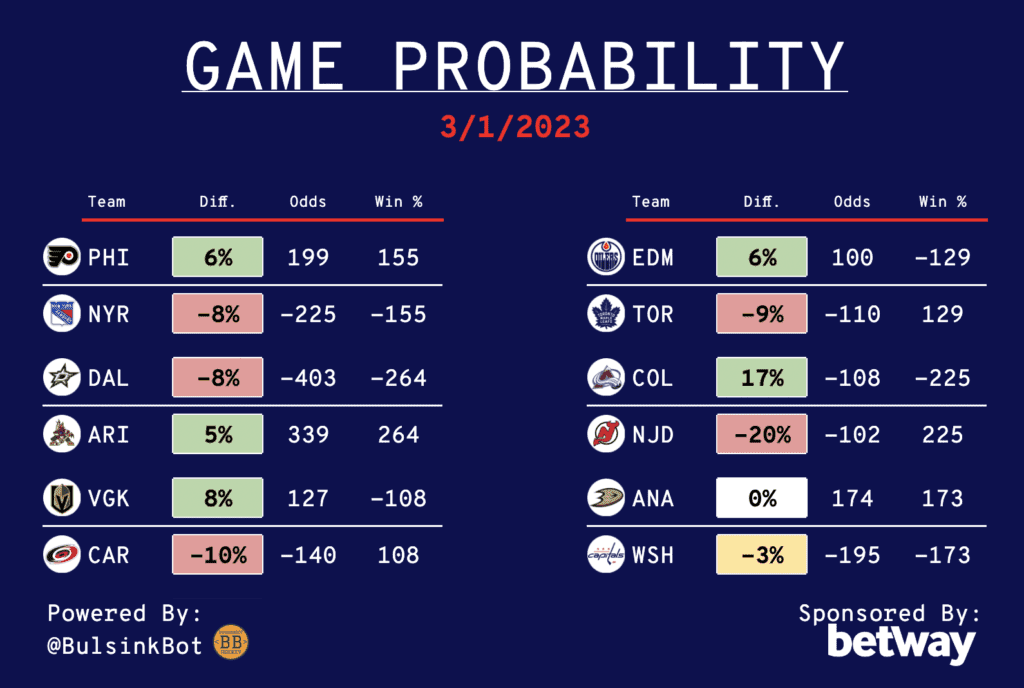 Daily NHL Betting Guide – 03/01/23