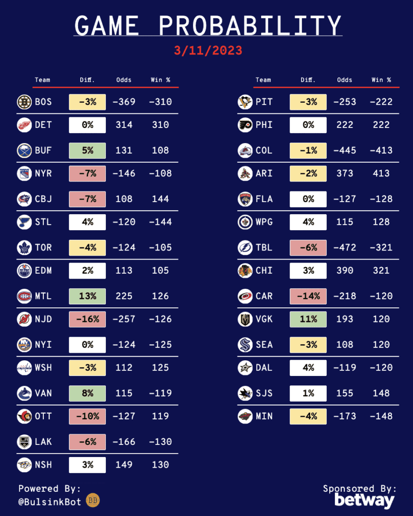 Daily NHL Betting Guide – 03/11/23