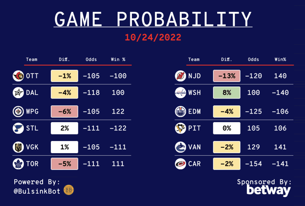 I will also provide some analysis on the best bets and update this post throughout the day to point out big injury news, lineup changes, and backup goalies starting.