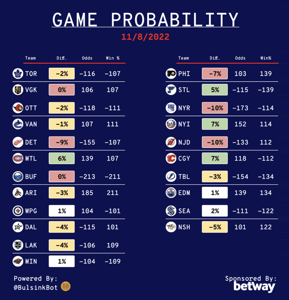 Daily NHL Betting Guide – 11/08/22