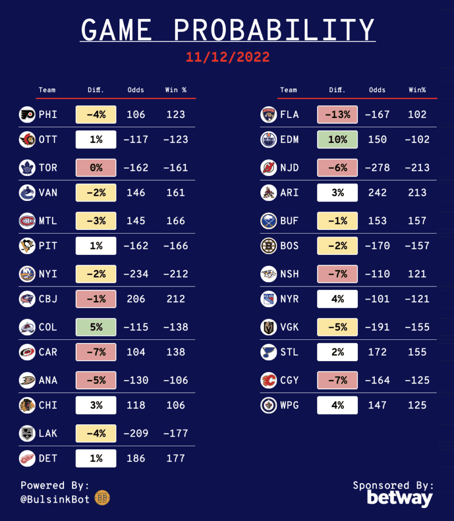 Daily NHL Betting Guide – 11/12/22