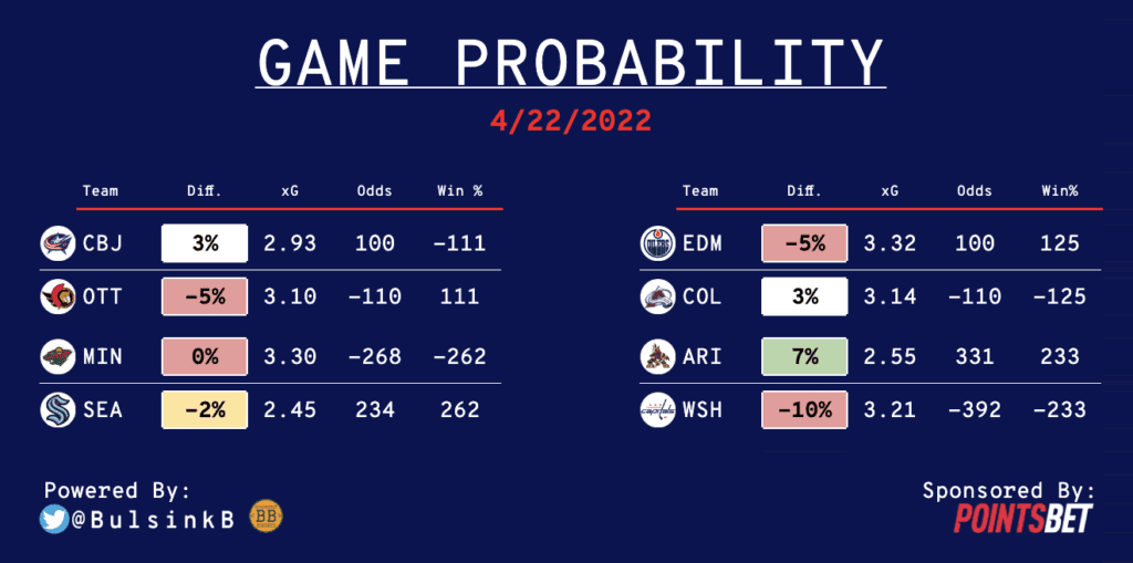 Thanks to another strong night, the record on the year is now up to 163-148-3. Up just about nine units. Tonight, it’s a quiet night in the NHL but favourites have been ROLLING as of late and I think that trend continues tonight. I’m not worried about the Wild playing in the second of back-to-back games because they’re staying on home ice and they’re 28-7-2 at home this season. The Kraken have won three in a row but those all came at home and they are not a good road team. Minnesota also has two high-end goalies, so that will help them in their second straight game. As for the Capitals, they’re coming off an OTL but are 6-3-1 in their last ten games. They have a lot to play for right now as a regulation win would put them back into a dead tie with the Pittsburgh Penguins for third in the metro. I don’t think they’ll let these points slip against a Coyotes team that has won just once in their last ten.