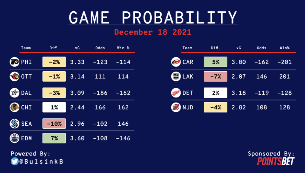 Carolina is -162 at PointsBet but the model views them as the largest favorites (-201) on the slate.