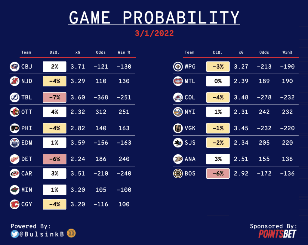 I will also provide some analysis on the best bets and update this post throughout the day to point out big injury news, lineup changes, and backup goalies starting.