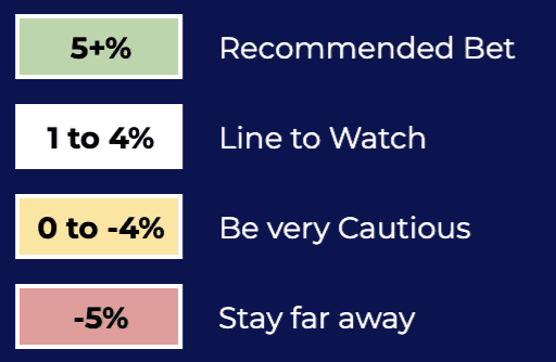 Carolina is coming off a rare loss in San Jose, and Seattle finally got a good goaltending performance out of Philipp Grubauer. The sportsbooks continue to be believers in the Kraken, but the model views this as the second biggest mismatch on the slate (-258), so take advantage of the -150 line.