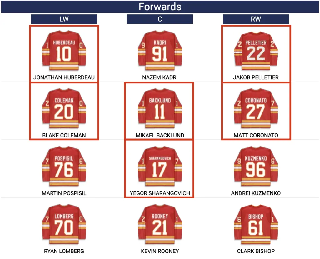 The Flames are a heavy focus this week because they have by far the best schedule overall and almost their entire forward group is available on the waiver wire. Their week starts off with a difficult matchup vs. the red-hot Logan Thompson, but gets much easier from there with meetings vs. Anaheim, Detroit and Seattle.