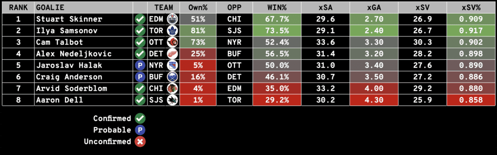 Keep an eye on our Starting Goalies page to ensure the goals listed below are CONFIRMED to start.