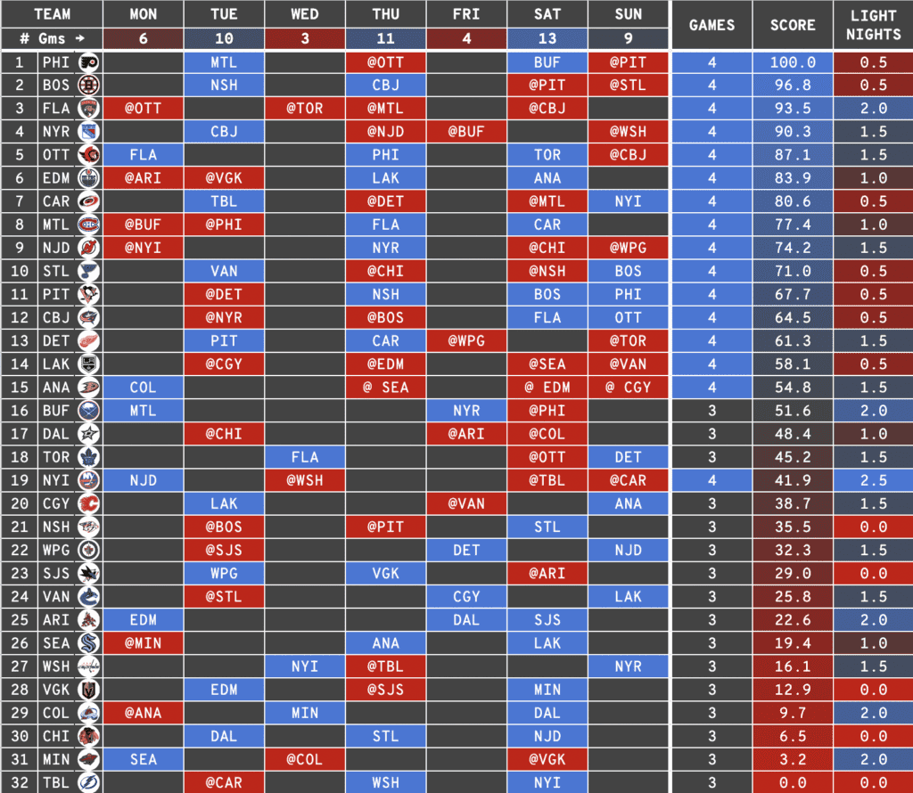 Philadelphia Flyers (SOS: #1 | Light: 0.5)