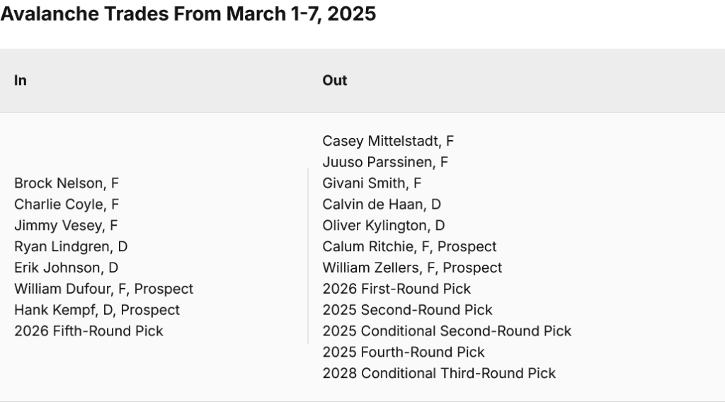 Colorado is uniquely equipped to roll the dice on drastic lineup changes because it has already gone through so many of them. Where the Florida Panthers (2-3 since the trade deadline), the Tampa Bay Lightning (2-2-1), and even the Stars (1-2-1) have struggled to integrate their new players, the Avalanche have chugged right along.