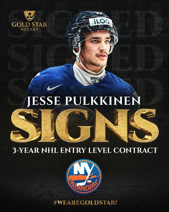 Congratulations to Jesse Pulkkinen (2024 NHL Draft 54th overall pick) on signing a 3-Year Entry Level Contract with the New York #Isles Islanders! #WeAreGoldStar!