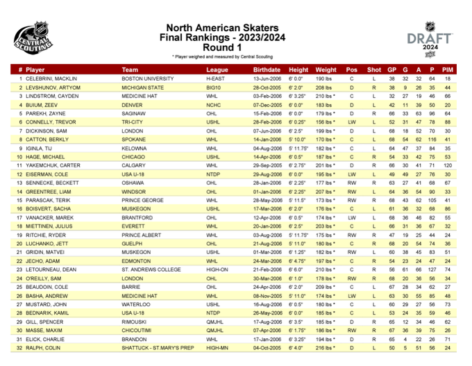 NHL Central Scouting has released their final rankings for the 2024 NHL Draft. Top players from each area. #NHLDraft