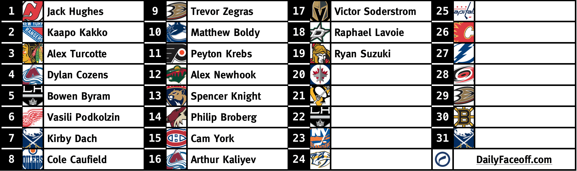 While they won’t have the option of adding a premier centre like Dylan Cozens, Kirby Dach or Trevor Zegras, there should still be plenty of forward options at the board in the mid-to-late first round.