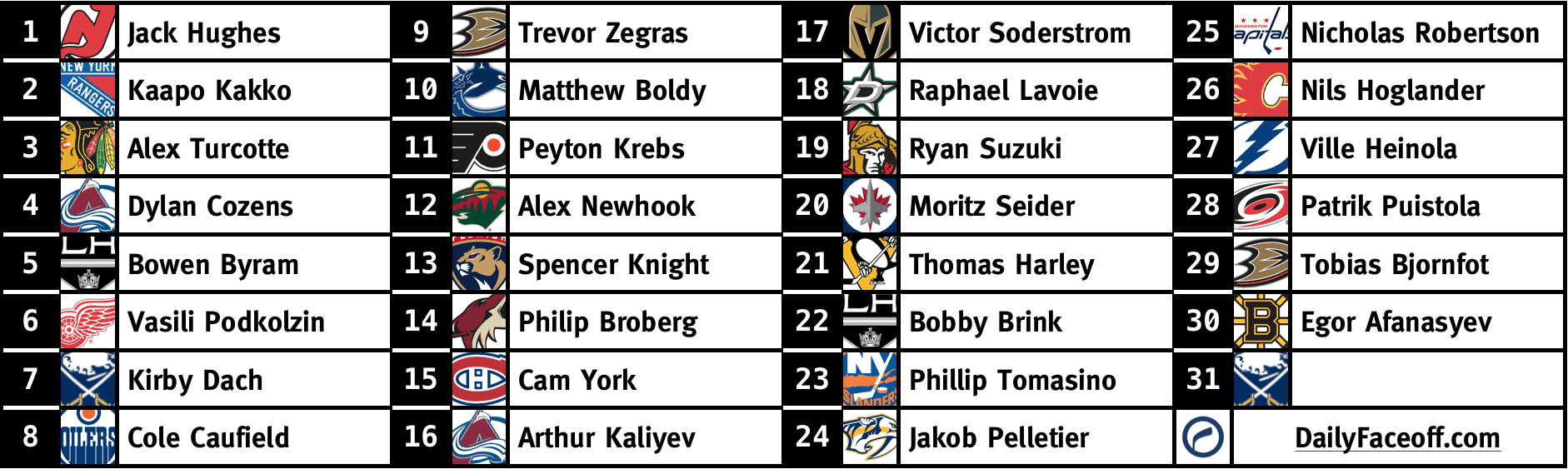The Boston Bruins lost in Game 7 of the Stanley Cup Finals but have a first round pick this season, after making their first selection at No.57 overall last year.