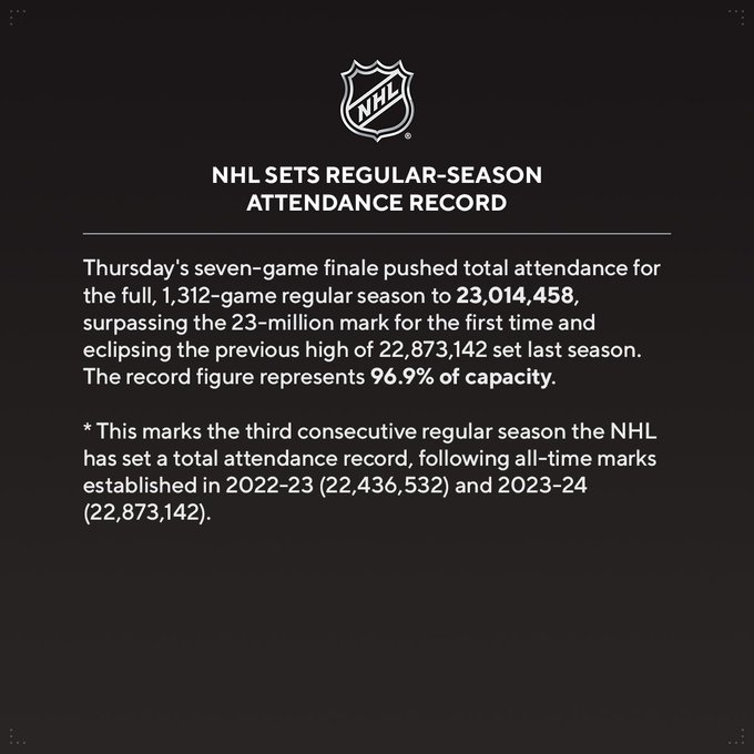 The @NHL sets regular-season attendance record. Full release: media.nhl.com/public/news/18…