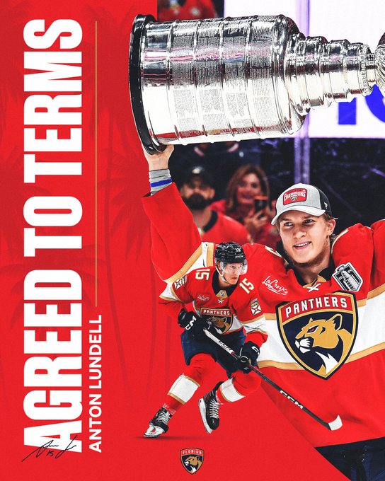 The team announced they signed forward Anton Lundell to a six-year deal, with PuckPedia reporting the deal is worth $30 million with an AAV of $5 million.