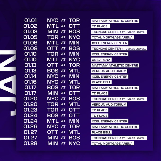 “Our inaugural season schedule features games being played at exceptional venues, at a variety of times, across all seven days of the week – offering multiple options for our fans,” said PWHL Advisory Board member Stan Kasten. “We are excited to drop the puck on New Year’s Day and launch a new era of professional women’s hockey.”