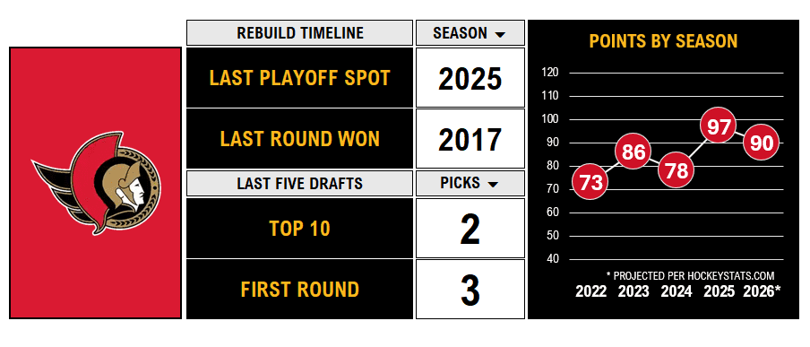 Bottom Line: Despite Ottawa’s miserable season, don’t write them off yet. A shakeup move or two and some goaltending insurance should go a long way. I’m expecting a big 2026-27 rebound.