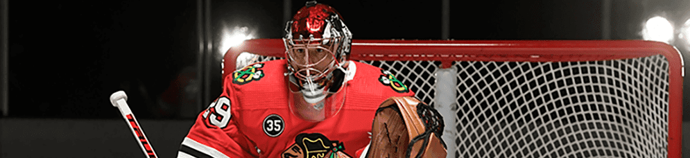 Fleury goes with the awesome, classic look of a 1980's hockey card – probably a tip of the cap to Tony O, whose number 35 will be on all Hawks jerseys this season. pic.twitter.com/dKkuYvYWzv