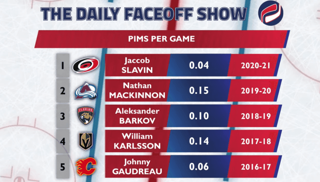 And then, if you look at his PIMs-per-game (0.11), it’s the lowest in the 17 seasons of his career. Look at how that compares to recent Lady Byng winners. This PIMs-per-game rate by Ovechkin so far this season fits right in there.