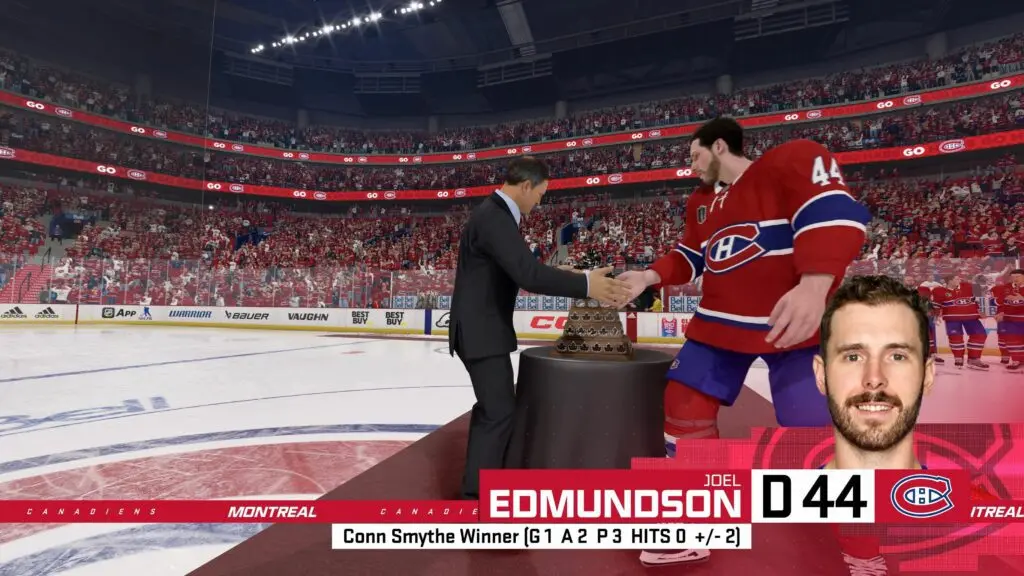 The crowd is absolutely electric. Scoring a hat trick feels great again, especially when Ray Ferraro and James Cybulski’s commentary acknowledges the fallen chapeaus. In the past, they’d talk about hats being thrown, only for the ice to be completely clear and everyone celebrating like it was a normal occurrence. Scoring your third of the night feels important and is something to strive for.