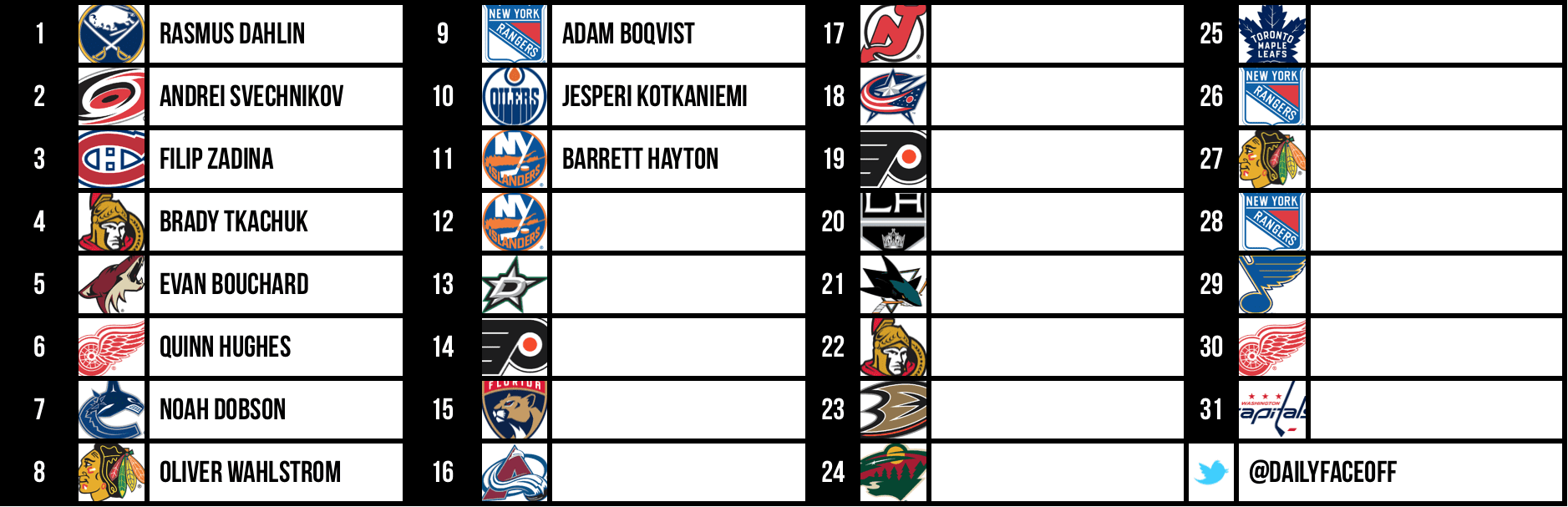 The Islanders gave up the most goals (3.57 GA/PG) in the NHL last season and likely would have liked to land one of the defensemen at the top of this draft. The Islanders have the No.11 and No.12 pick, as well as two second round picks, so they have the flexibility to move up in the draft if they want to. If they stay at No.11 and No.12, the Islanders will likely add two forwards because they don’t want to reach too far for a defenseman.