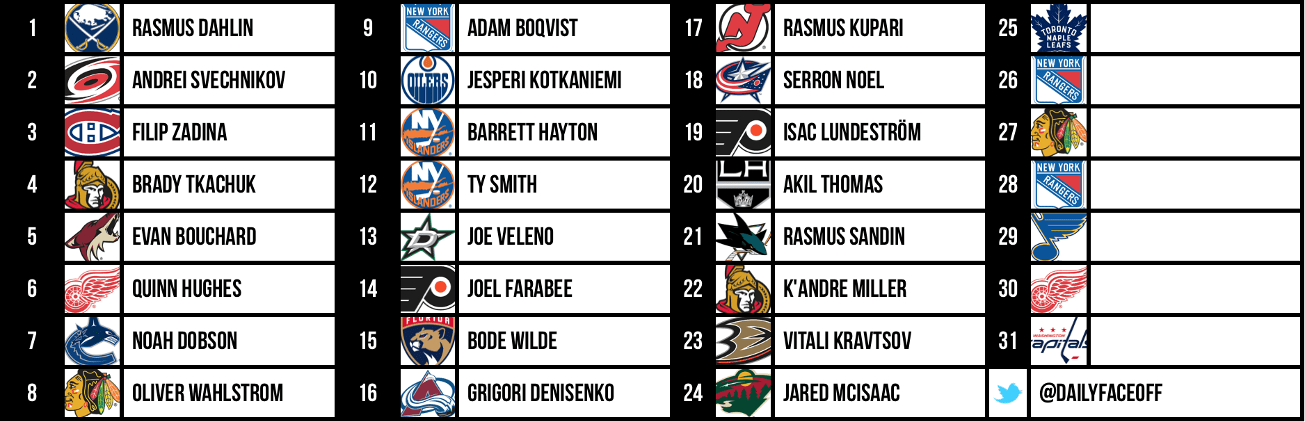 - Joel Eriksson Ek (No.20 in 2015) — Eriksson Ek spent the majority of last season already in the NHL but didn’t produce the kind of offensive numbers as expected. The 21-year-old scored just six goals and 10 assists (16 points) in 75 games. He figures to be a top-9 forward for the Wild this fall.