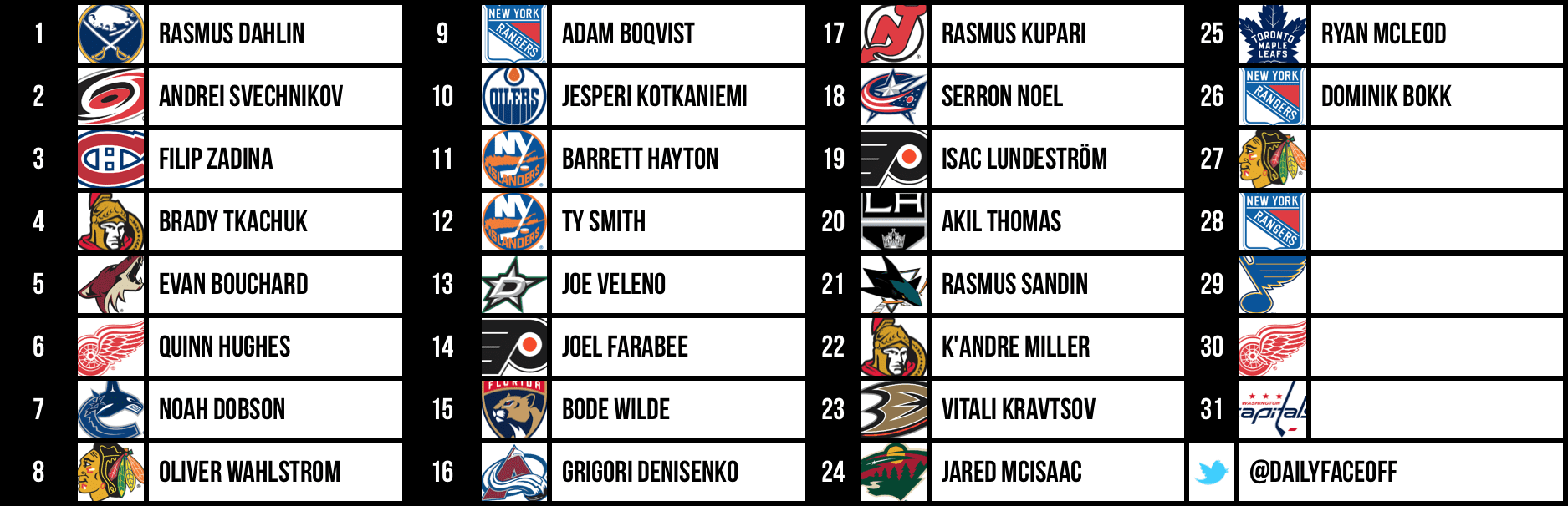 Last year they were able to add talented forwards Lias Andersson (No.7) and Filip Chytil (No.21) and if the real NHL Draft goes the way my mock did…they will be really happy again. A year after adding Swedish and Czech forwards, I have them drafting a Swedish defenseman and German winger.