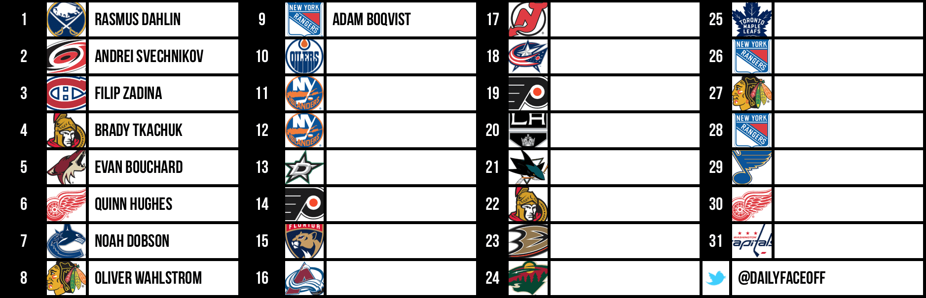 The Rangers did not have a first-round pick from 2013-to-2016, but picked Lias Andersson (No.7) and Filip Chytil (No.21) last year. As a result, the Rangers’ prospect pool is pretty shallow. The Rangers are committed to a rebuild, but a great draft this month can expedite the process.