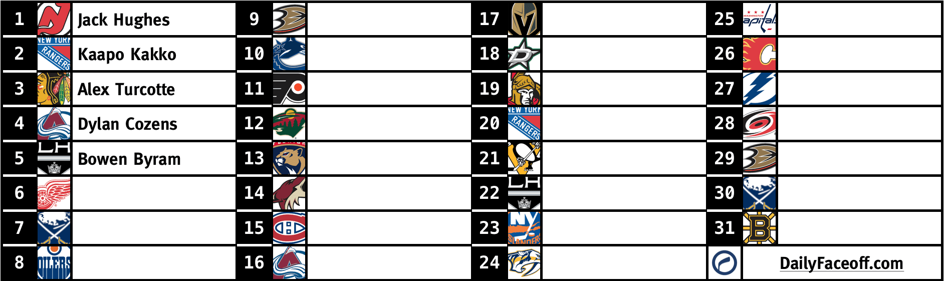 The Kings had 71 points that season and drafted Drew Doughty with the No.2 overall pick. This season they also had 71 points and there is a good chance that Bowen Byram will be there for them at No.5 overall.